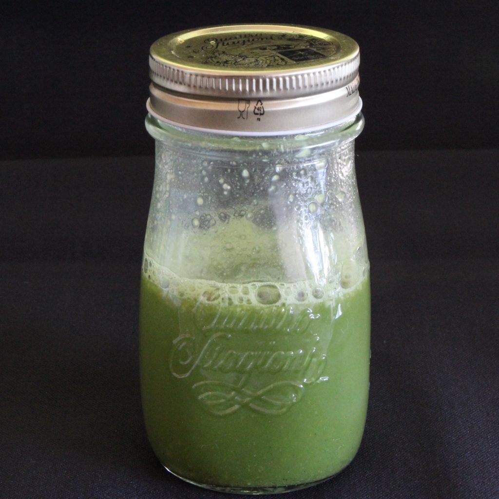 イタリア Bormioli Rocco 社のクアトロ・スタジオー二ジャーです。容量、形によって11種類のジャーポットがラインナップされていますが、青汁のシェイクには20cl 6 3/4oz のタイプが大きさ、容量ともにベストです。口の広さも適度に大きく、粉末を入れやすい。飲みくちもちょうどよい厚さでネジの部分もさほど気にならない。形も少しズンドウだけどマーク、形ともにイタリアのオシャレ感が出ていてオシャレな食卓にもほぼマッチ。